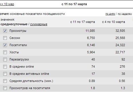 В среднем за 7 дней (с 4 по 10 марта): 24,322 уников